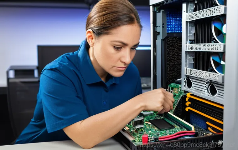 외부 장치 분리 후에도 증상이 같다면, 이제 내부를 점검해 볼 차례예요. 가장 흔한 원인 중 하나가 바로 메모리(RAM)나 그래픽 카드의 접촉 불량입니다. 컴퓨터 본체 뚜껑을 열고 메모리 카드를 슬롯에서 조심스럽게 뽑아낸 다음, 접촉 단자 부분을 부드러운 천이나 지우개로 살살 닦아준 후 원래 슬롯에 ‘딸깍’ 소리가 날 때까지 다시 단단히 장착해 보세요.
